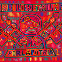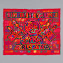 DescriptionAppliqued, commercial cotton, multicolored on red ground. Political poster: cow head medallion; "SIMBOLIOS DE TRIUNFO. O," "MR. PNR," "PNR UP," "POR LA PATRIA," "CPN," "1952," "1956." // Parker-Neal, 1977, p. 206.